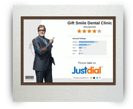 Quality and service in the central hub of Chennai in Royapettah midst the busiest theaters and malls like Express Avenue and Spencers Plaza. Our Gift SMILE Dental is located in the heart of city to serve the need of your mind.