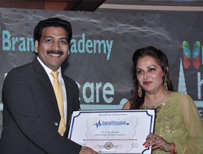 Best Promising Dentist of the Year - 2014 was awarded to Dr Sudhakar on August 2014, by the BIG research company for his outstanding service in the field of Dentistry.